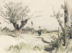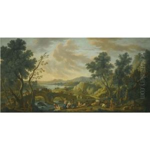 A Marshland Clearing With Peasants And Cattle, Rising Hills Beyond