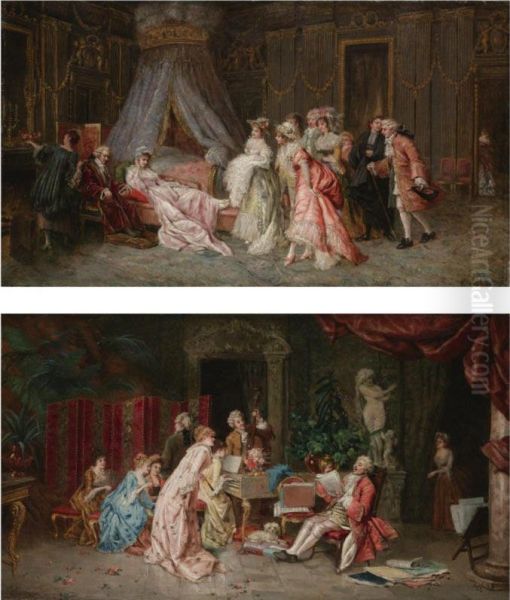 Bring the timeless beauty of Jose De Cala Y Moya's Los Invitados; El Recital: Una Pareja (the Visitors; Therecital: A Pair) into your home with a handmade oil painting reproduction. Carefully recreated on canvas by skilled artists using traditional techniques, this piece captures the delicate brushwork, subtle light, and vibrant color of the original masterpiece. With museum-level quality and rich texture, it brings elegance and artistic depth to any space. Enjoy free shipping and make this masterpiece a part of your personal collection.