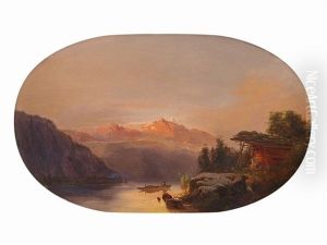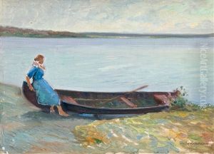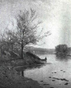 A River Scene With A Figure In A Rowboat