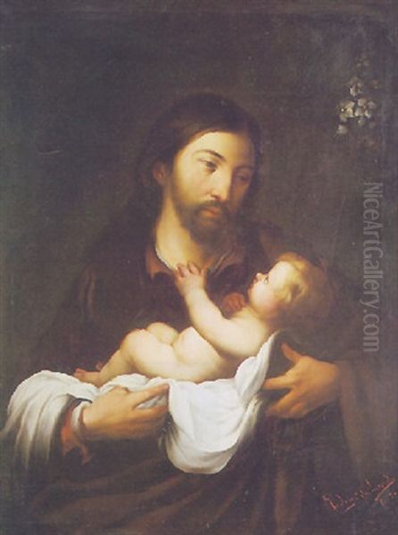San Jose Con El Nino Oil Painting by Jose Maria Rodriguez De Losada