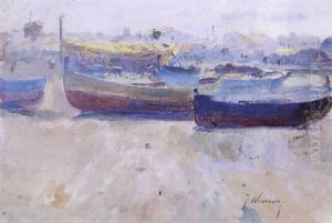 Bueyes Y Barcas En La Playa (oxen And Boats On A Beach)