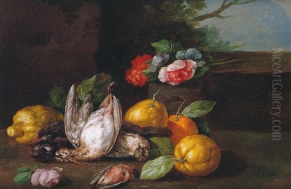 Bodegon Con Aves, Limones, Naranja Y Rosas