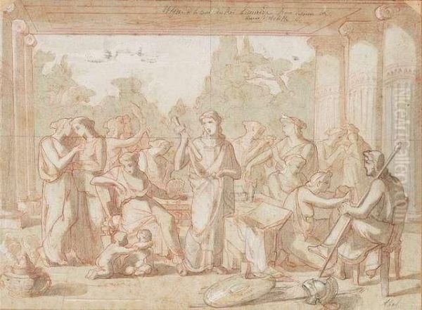 Achill Among The Daughters Of Lykomedes With The Sword Of Odysseus. Red And Black Chalk On Paper, Washed And Heightened White, Mounted Of Another Sheet Of Paper, Inscribed