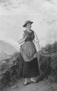 Tyrolean Maiden Gathering Wild Flowers