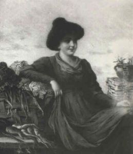 Portrait Einer Dame Mit Veilchen Und Rosen In Der Hand