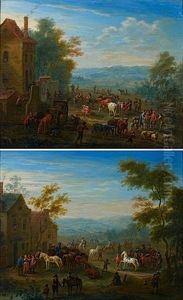 Ausgespannte Pferde Vor Der Schenke