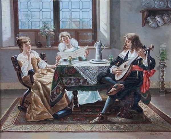 Bring the timeless beauty of Josef Johann Molitor von Muehlfeld's A Musical Interlude into your home with a handmade oil painting reproduction. Carefully recreated on canvas by skilled artists using traditional techniques, this piece captures the delicate brushwork, subtle light, and vibrant color of the original masterpiece. With museum-level quality and rich texture, it brings elegance and artistic depth to any space. Enjoy free shipping and make this masterpiece a part of your personal collection.