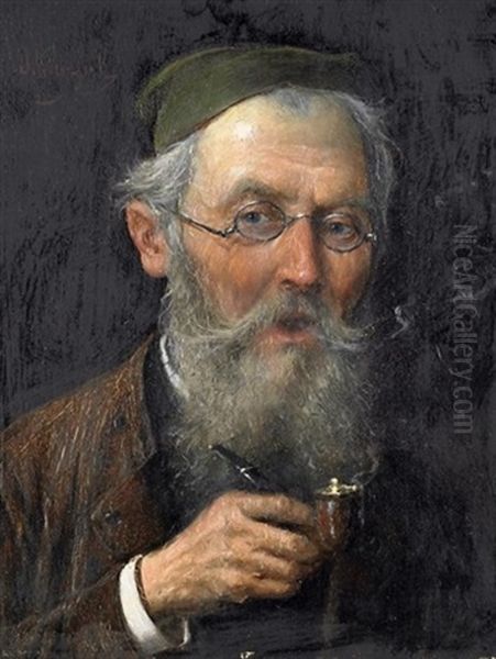 Der Pfeifenraucher Oil Painting by Josef Kinzel