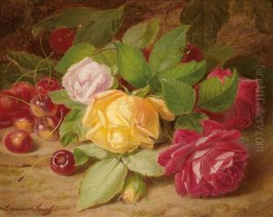 Stilleben Mit Rosen, Erdbeeren Und Einem Glaspokal
