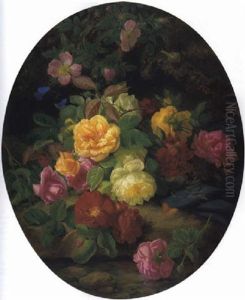 Stillleben Mit Rosen, Zeisig Und Schmetterling