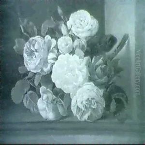 Black And White Grapes In An Urn With A Gourd, Roses, Oranges And Lemons On A Ledge