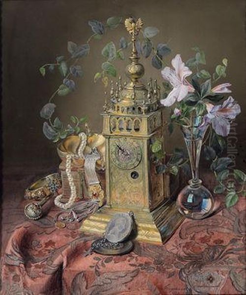 A Stilllife With A Clock And Jewellery