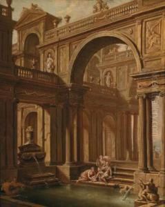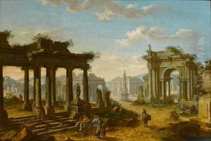 Capriccio Of Ruins With Figures Resting Beneath A Classical Portico