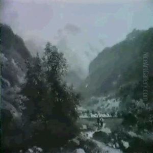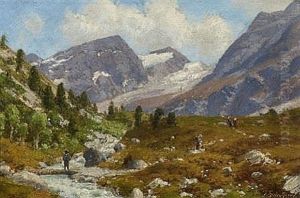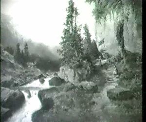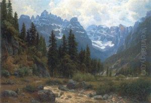 "gebirgslandschaft Mit Bachlauf". Sign. Ol Auf Lwd. Rest. 60,5 X 87 Cm. Rahmen