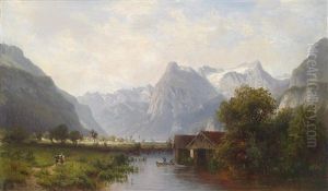 "gebirgsdorf Mit Bauern Und Vieh". Sign. Und Bez. Munchen. Ol Auf Lwd. Besch. 77 X 109 Cm. Rahmen