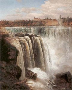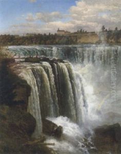 Wasserfall Mit Touristen Auf Dem Steg Vorn