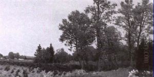 Kleiner See Mit Baumgruppe Und Blick Auf Ein Dorf