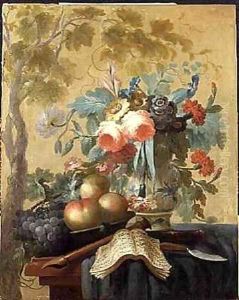 A Still Life With Song Bird And Fruit In A Crystal Tazza