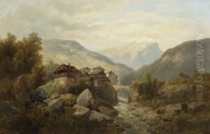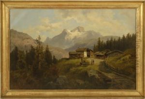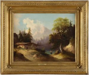 Gebirgslandschaft Mit Sennerhutte Und Figurliche Staffage