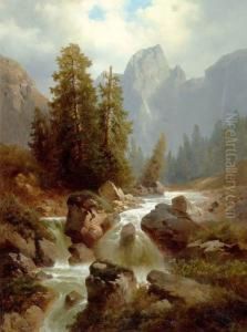 River In The Alps With Staffage