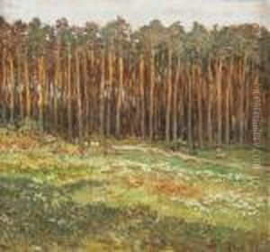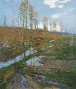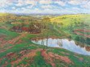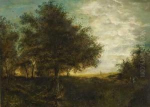Landscape With A Ploughman Oil Painting by Josef Ullmann