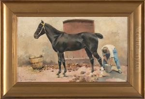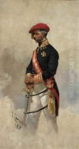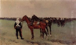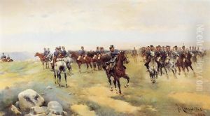 Josep Cusachs i Cusachs, also known as Jose Cusachs, was a Spanish painter born on November 18, 1851, in Barcelona, Catalonia. He was noted for his military themes and equestrian portraits, capturing the dynamic movement and drama of his subjects with a vivid and energetic brushwork. Cusachs came from a family with military ties, which influenced the subject matter of his art.