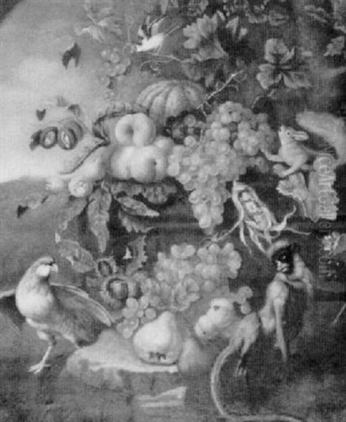 Still Life Of Fruit With Monkey, Squirrel And Birds