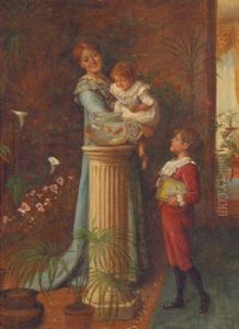 Maid Feeding Duck And Ducklings At A Cottage Door