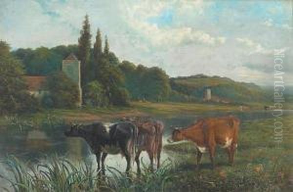 Bring the timeless beauty of Joseph Clark's Cattle Watering, Church Beyond And Another In The Distance into your home with a handmade oil painting reproduction. Carefully recreated on canvas by skilled artists using traditional techniques, this piece captures the delicate brushwork, subtle light, and vibrant color of the original masterpiece. With museum-level quality and rich texture, it brings elegance and artistic depth to any space. Enjoy free shipping and make this masterpiece a part of your personal collection.