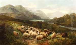 Sheep By A Burn In A Highland Landscape