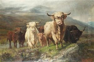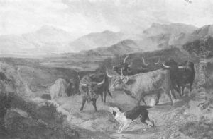 A Drover With Cattle In A Highland Lake Landscape