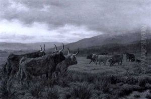 Highland Cattle Watering In A Landscape