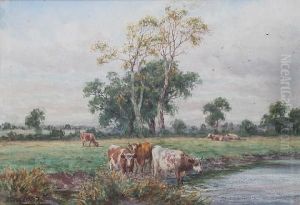 Cattle Watering In A River Landscape
