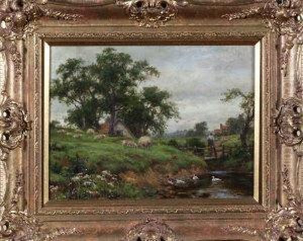 Bring the timeless beauty of Joseph Dixon Clark's A Country Scene With Sheep And Ducks At A Riverbank And A Female Figure Crossing A Rustic Bridge In The Middle Distance into your home with a handmade oil painting reproduction. Carefully recreated on canvas by skilled artists using traditional techniques, this piece captures the delicate brushwork, subtle light, and vibrant color of the original masterpiece. With museum-level quality and rich texture, it brings elegance and artistic depth to any space. Enjoy free shipping and make this masterpiece a part of your personal collection.