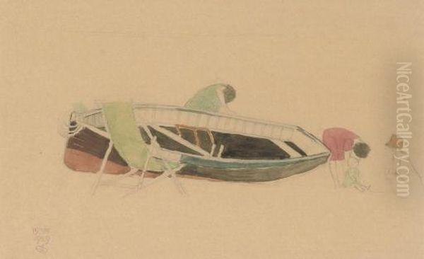 Playing On The Beach; And Figures And A Deckchair By A Beached Rowing Boat