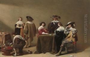 An Elegant Company Playing Cards In An Interior