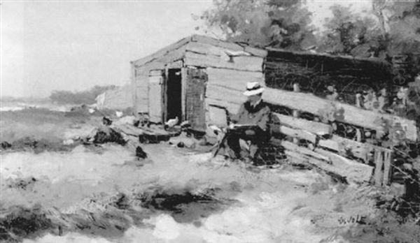 Artist At Work Beside A Chicken Coop