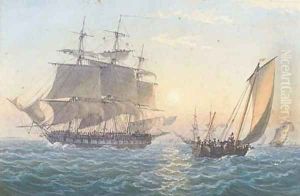 An Armed Merchantman And Royal Naval Two-decker