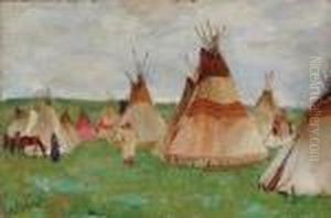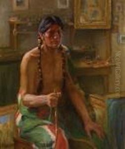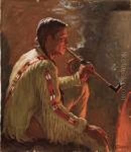 Still Life With Autumn Leaves, Chinese Vase And Embroidery