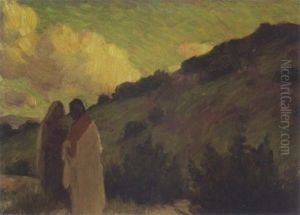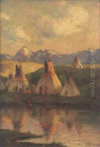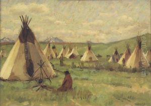 An Indian Encampment At Sunset