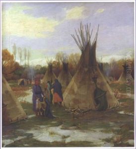 Plains Indian Camp In Snow