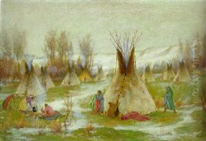 Indian Encampment In Winter