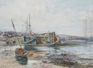 Fisherman And Boats In A Tranquil Coastal Bay, Possibly Porthpatrick Bay, Anglesey, Signed Lower Left