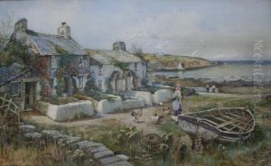 Cottages On The Coast With Fishermen Tending Their Boats