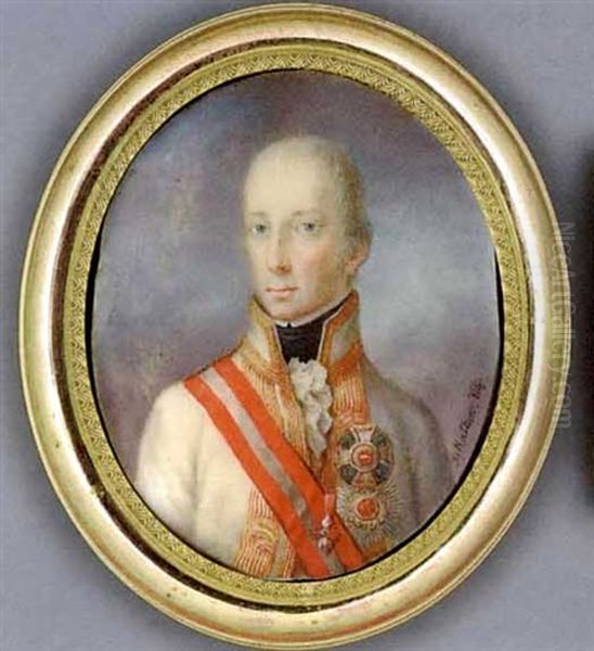 Francis Ii, Holy Roman Emperor And Emperor Of Austria, In White Coat With Gold-striped Facings And Collar, Frilled Cravat And Black Stock, Wearing The Jewel Of The Order Of The Golden Fleece...
