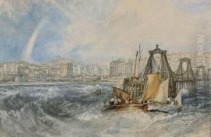 Seapiece With Fishing Boats Off A Wooden Pier, A Gale Comingin