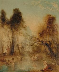Foul by God River Landscape with Anglers Fishing from a Weir, c.1830