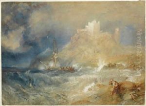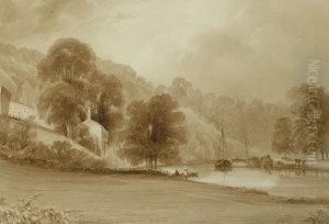 Sunlight Breaking Through Clouds, With Figures Boating On A River