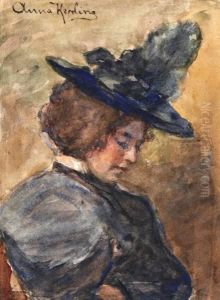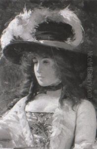 Portrait Of A Young Woman, Bust Length, Wearing A Hat With A Red Feather.