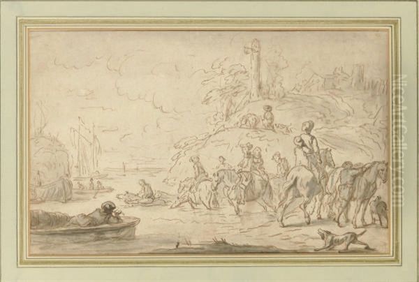 A Party On Horseback Crossing A River (recto); Studies Of A Horse'shead And Two Figures (verso)